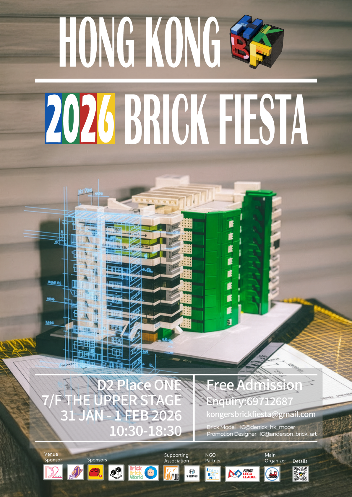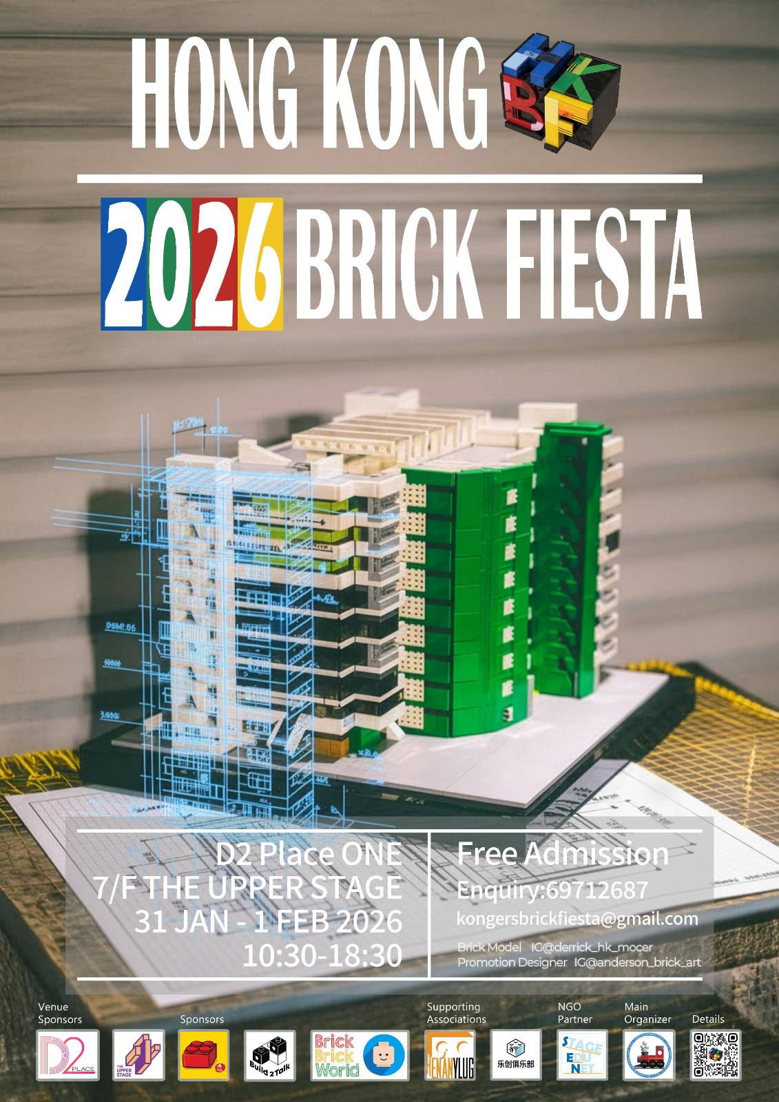 Hong Kong Brick Fiesta 2026 is scheduled for January 31st (Saturday) and February 1st (Sunday) between 10:30am to 6:30pm at THE UPPER STAGE, 7/F, D2 Place ONE in Lai Chi Kok.