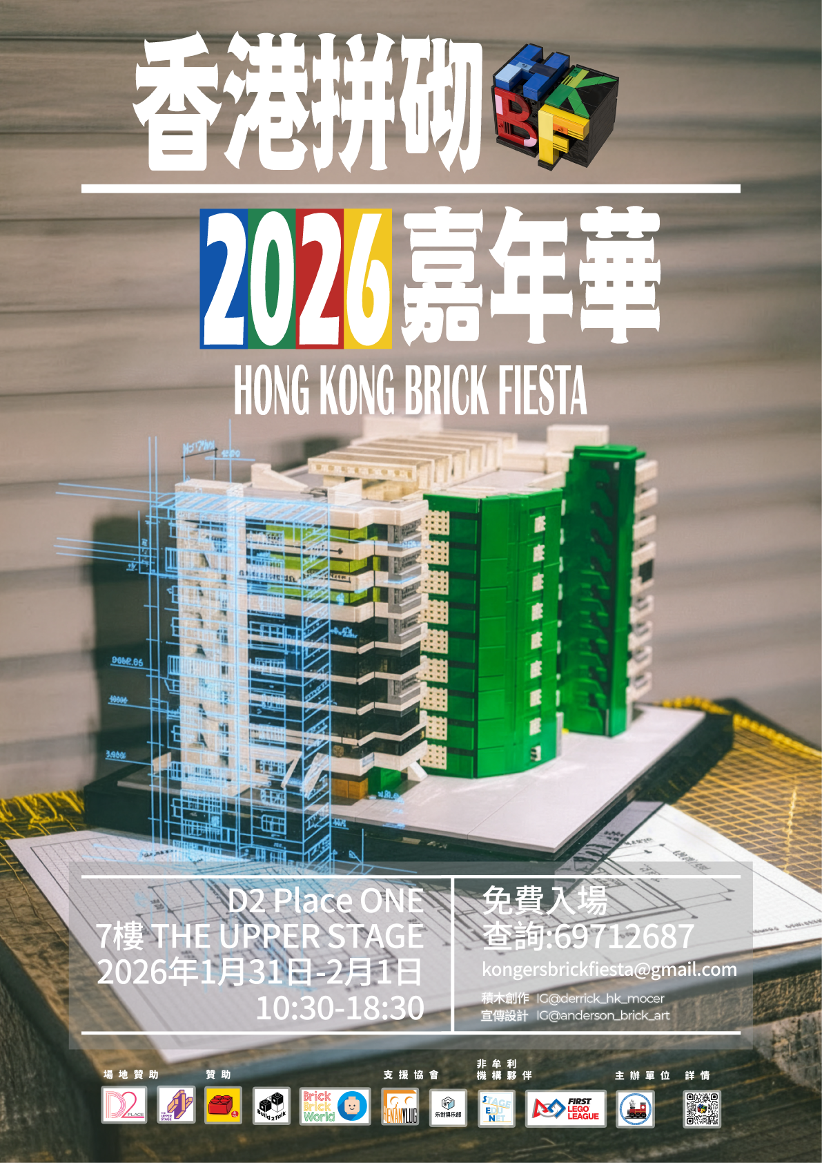 感謝Derrick_HK_Mocer所創作的賽馬會創意藝術中心、及anderson_brick_art 幫忙設計2026年的海報及各宣傳品。