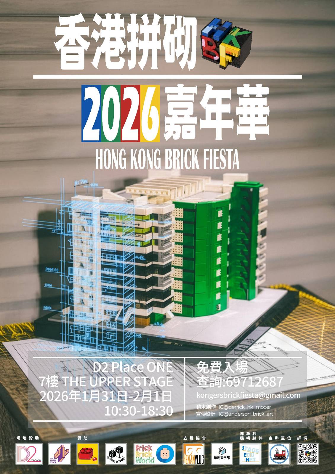 Hong Kong Brick Fiesta 2026 is scheduled for January 31st (Saturday) and February 1st (Sunday) between 10:30am to 6:30pm at THE UPPER STAGE, 7/F, D2 Place ONE in Lai Chi Kok.